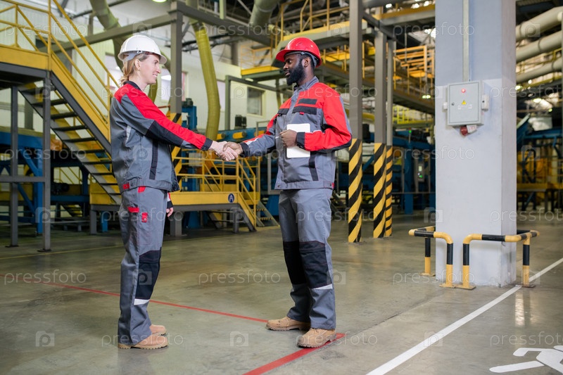 Фабричные рабочие приветствуют друг друга