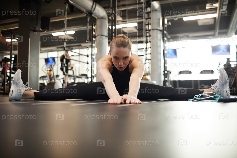 Молодая женщина делает разрывы в тренажерном зале
