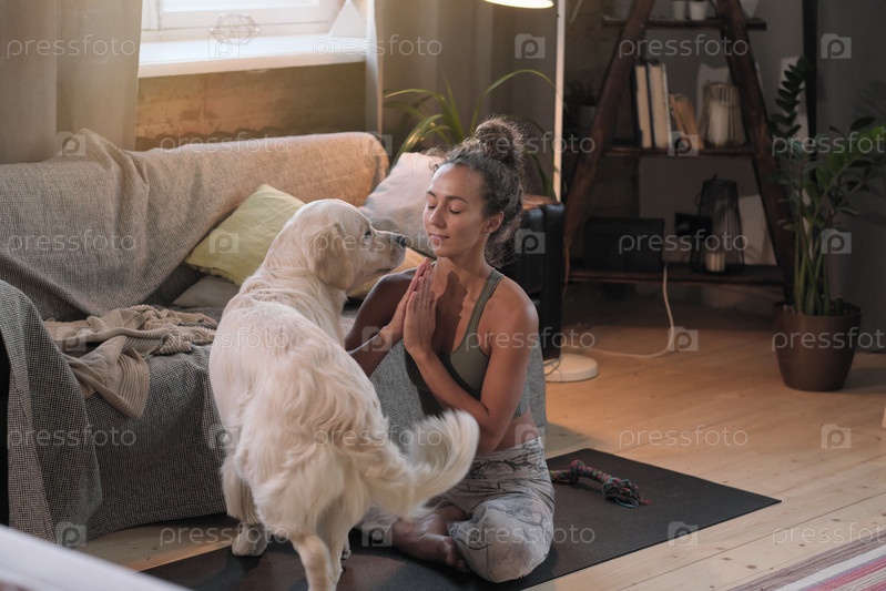 Женщина медитирует дома