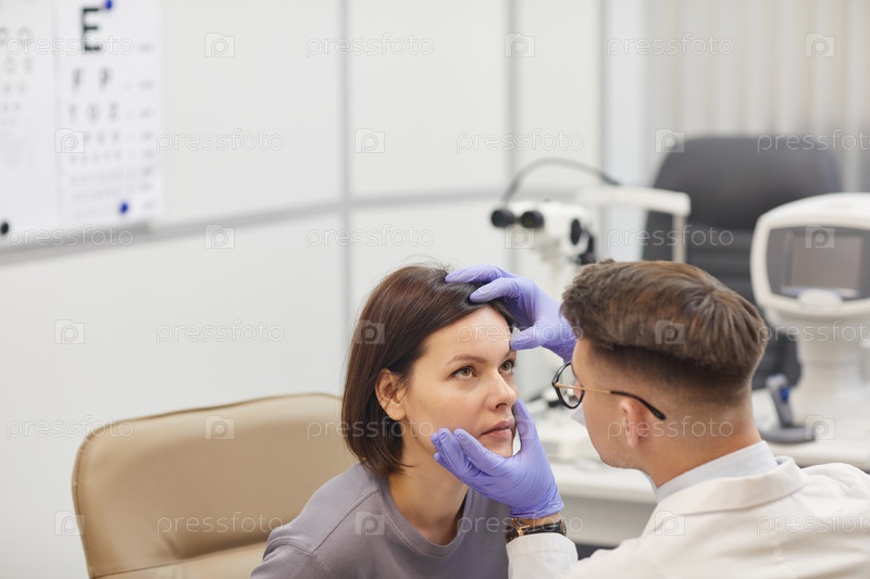 Офтальмолог осматривает глаза в клинике