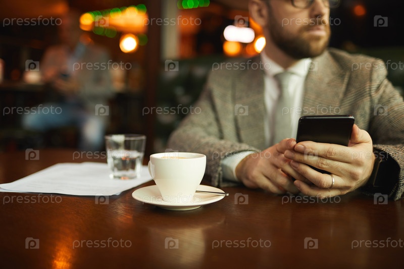 Мужчина с телефоном в кафе