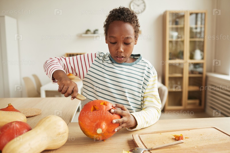 Афроамериканский мальчик готовится к Хэллоуину