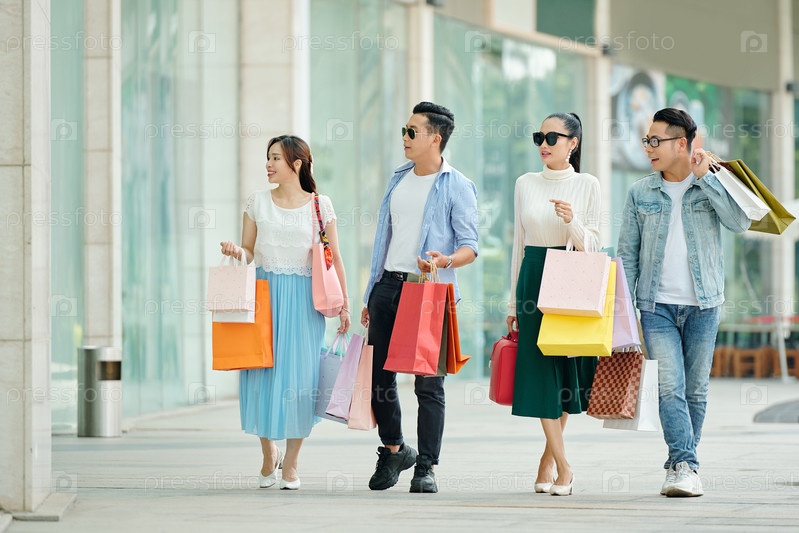 Молодые люди вместе делают покупки