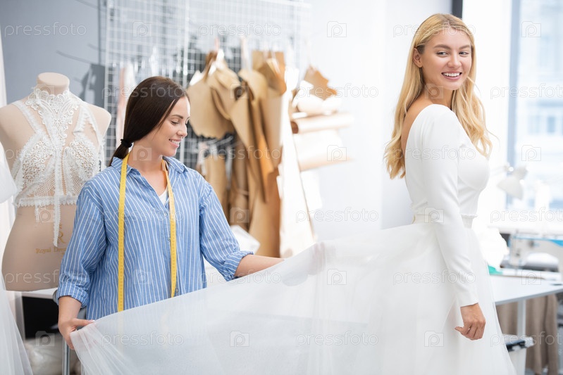 Школьница корректирует юбку на платье