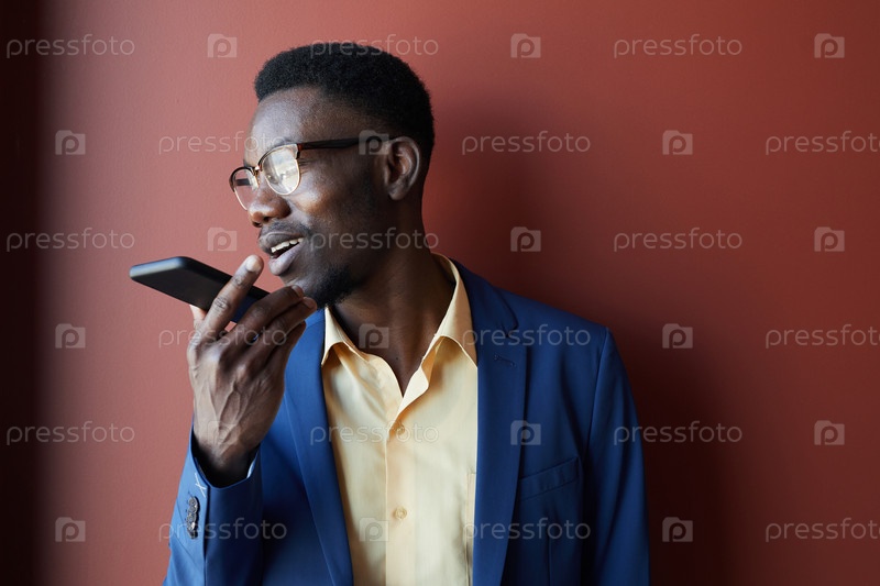 Афроамериканский бизнесмен записывает голосовое сообщение