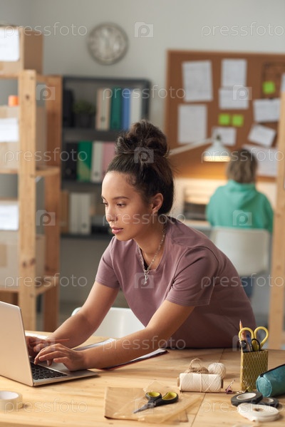 Женщина, использующая ноутбук в мастерской