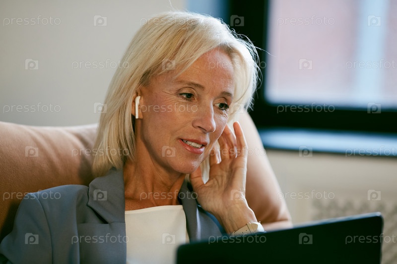 Успешная деловая женщина говорит с помощью видеочата