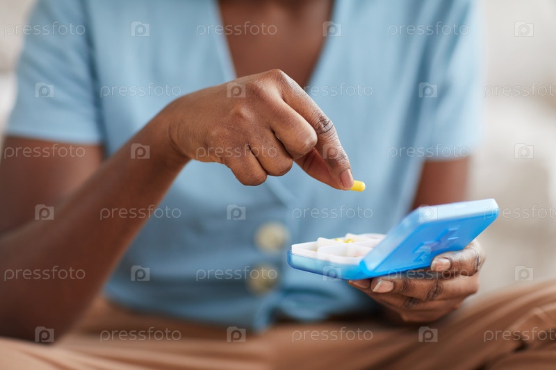 Афроамериканская женщина, держащая таблетки