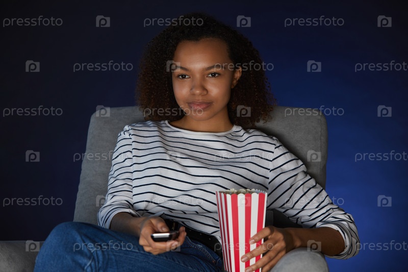 Молодая женщина смотрит фильмы дома