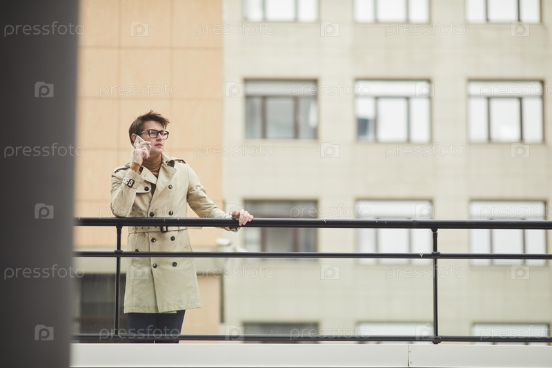 Бизнесмен, говорящий по смартфону На улице в городской обстановке