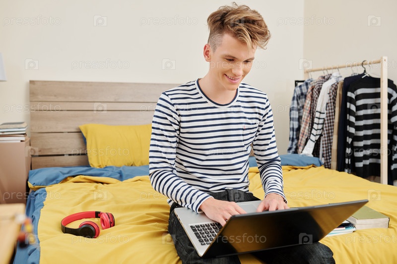 Подросток, работающий на ноутбуке
