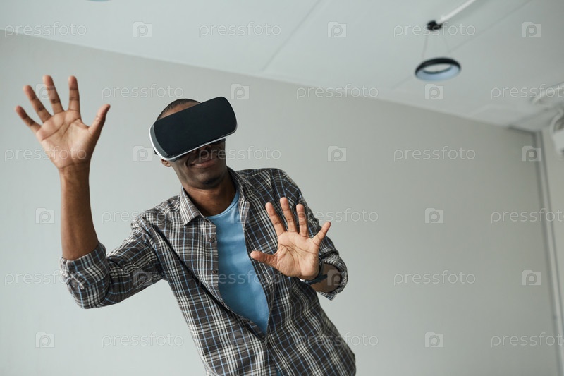 Человек играет в виртуальную игру