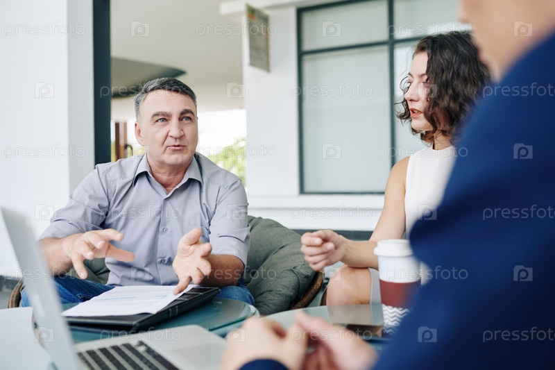 Предприниматель разговаривает с командой