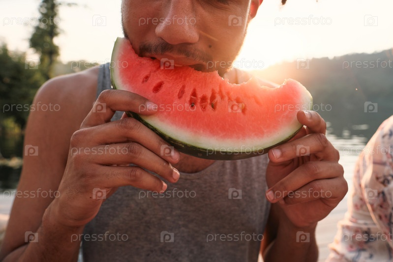 Мужчина ест арбуз