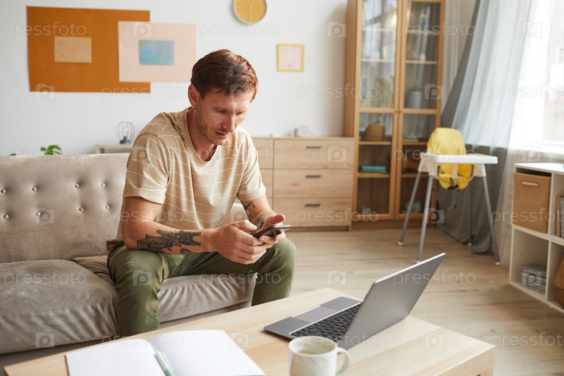 Мужчина, использующий телефон дома