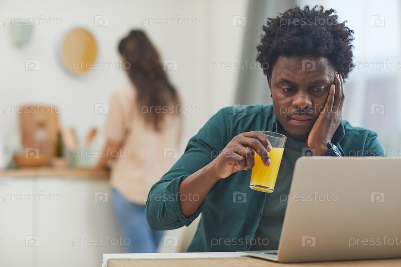 Мужчина, использующий ноутбук дома