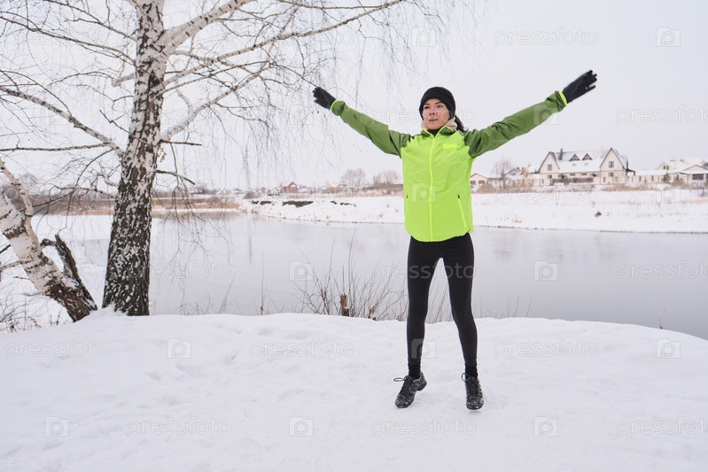 Выполняя прыжки на снегу