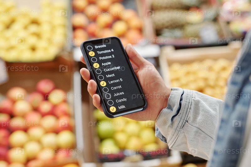 Использование приложения с контрольным списком во время покупки продуктов питания