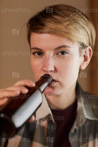 Женщина пьет пиво