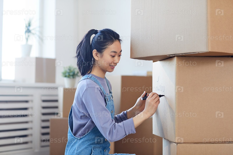 Young Asian Woman Packing Boxes Молодая азиатская женщина упаковочная коробка