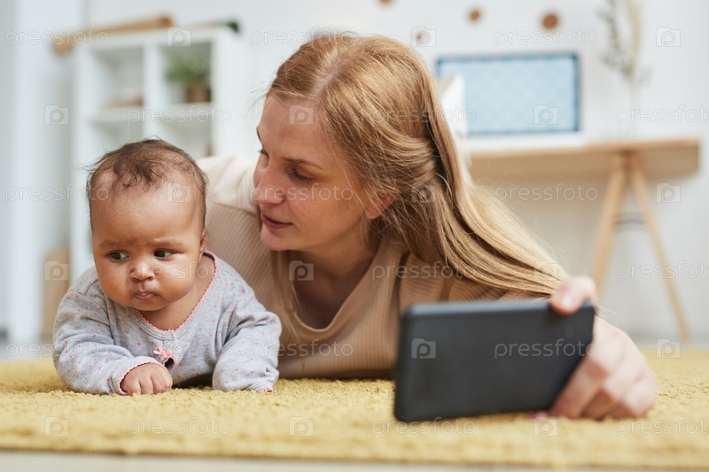 Любящая мать делает селфи с ребенком