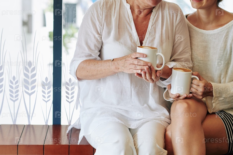 Мать и дочь с кофейными кружками