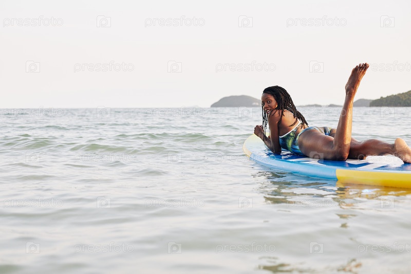 Женщина отдыхает на плавучей супе