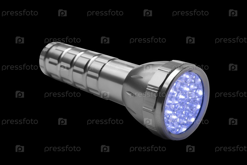 Блестящий светодиодный фонарь на черном фоне