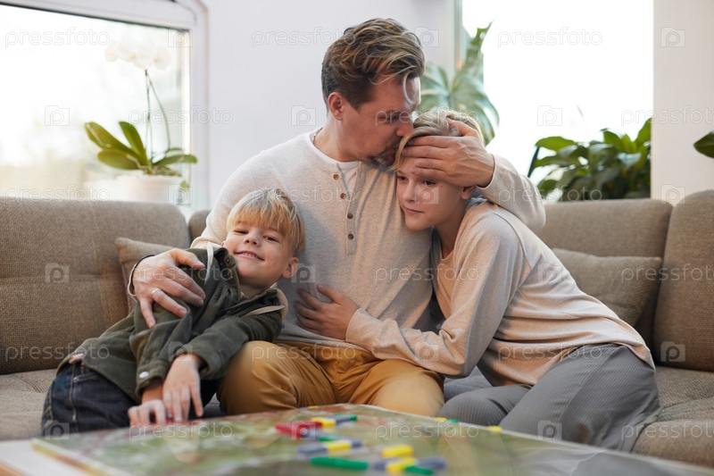 Любящий отец с двумя сыновьями