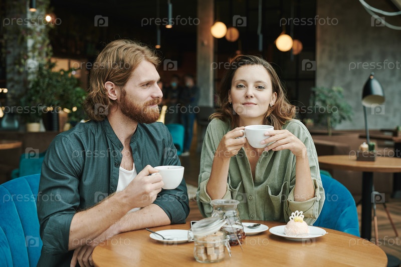 Недовольный молодой бородатый мужчина сидит в современном кафе и ждет ответа, звонит по сотовому телефону