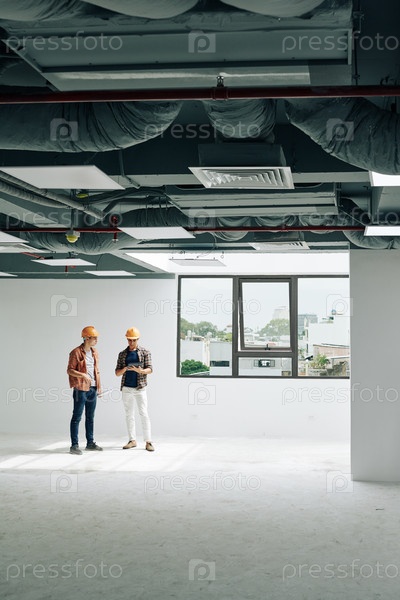 Подрядчики осматривают комнаты в доме