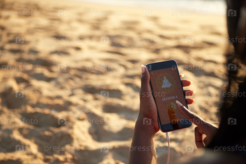 Женщина, использующая медитационное приложение