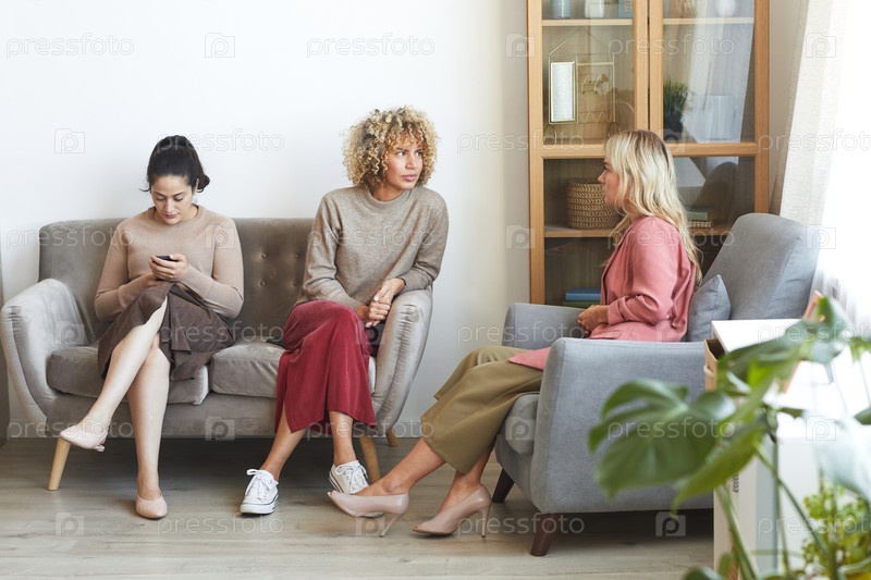 Группа женщин, общающихся в помещении