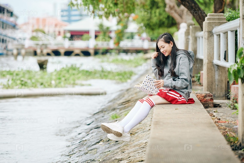 Женщина, проводящая время на речном запрете
