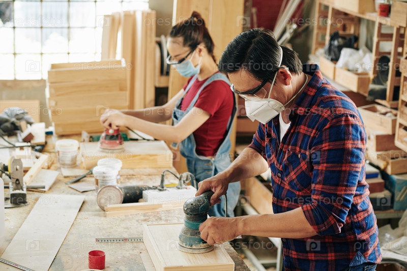 Плотники полируют деревянные ящики