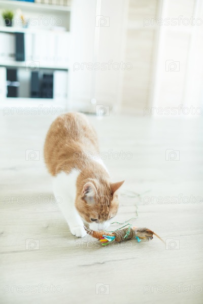 Кошка играет с игрушкой