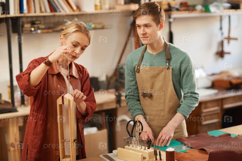 Два ремесленника в кожевенной мастерской