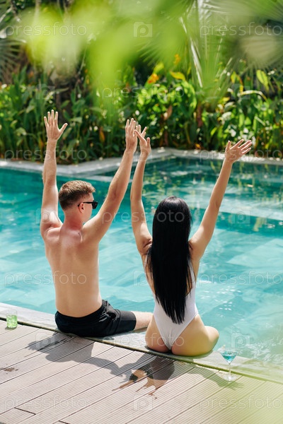 Взволнованная пара у бассейна
