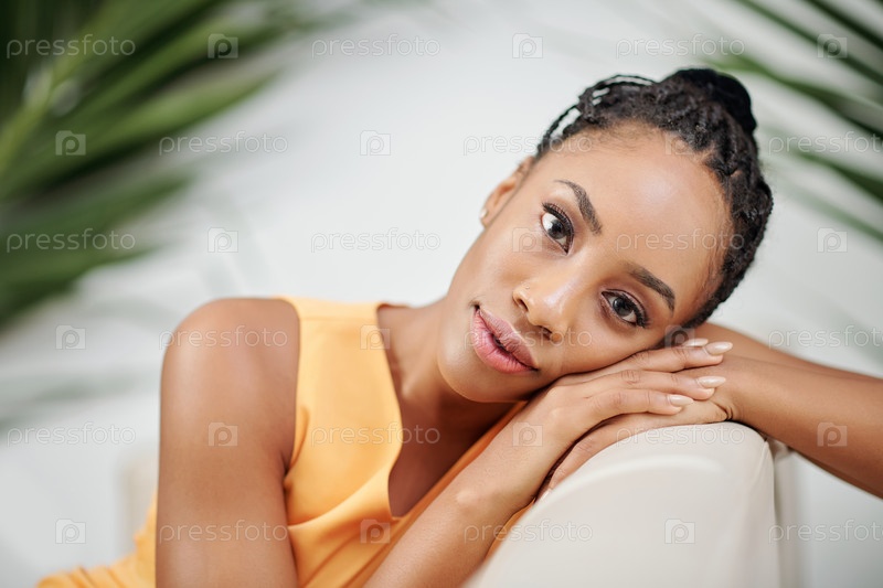 Мечтательная молодая чернокожая женщина
