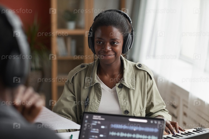 Улыбающийся афроамериканский музыкант в студии