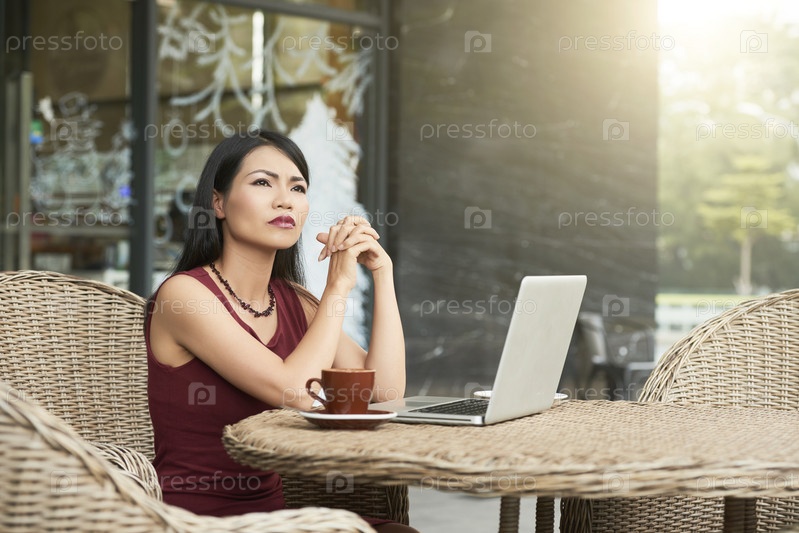 Серьезная хмураясь азиатская занятая женщина