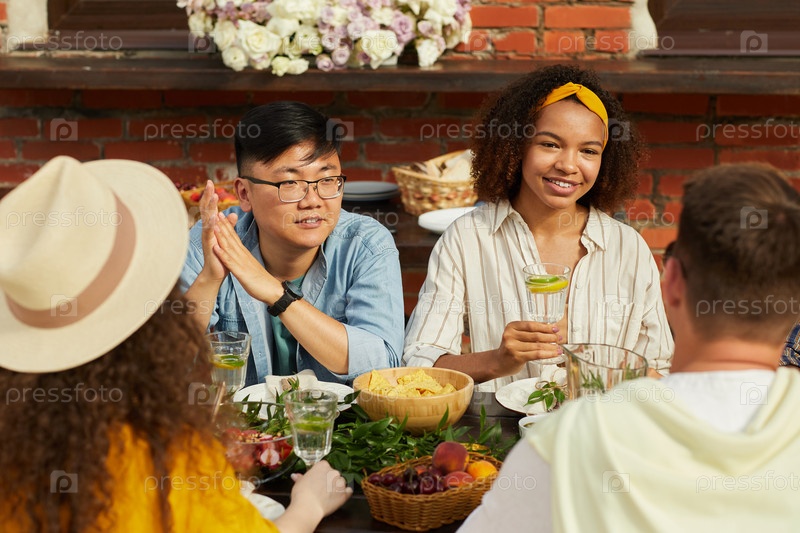 Друзья, обедающие на свежем воздухе на летней вечеринке