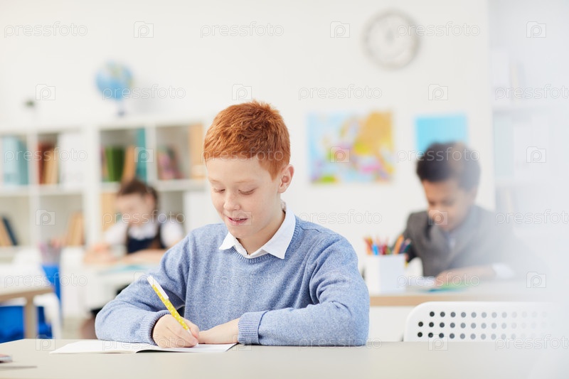 Школьник пишет в блокноте