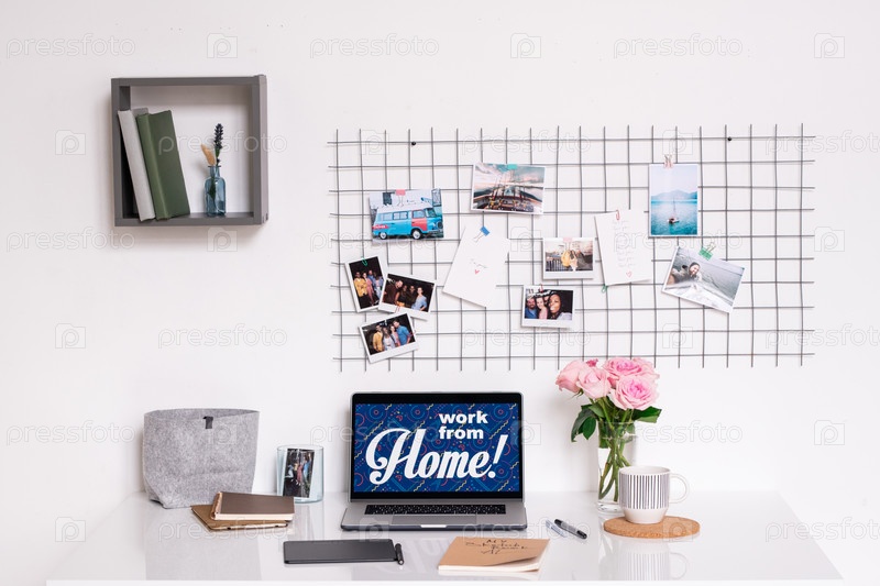 Рабочее место современного дизайнера у стены домашней комнаты или домашнего офиса