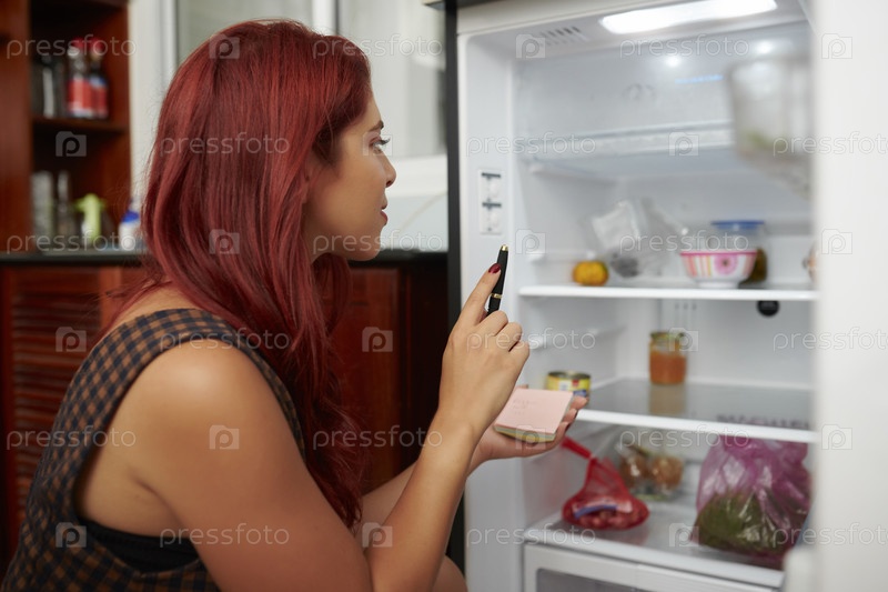 Молодая женщина делает список покупок