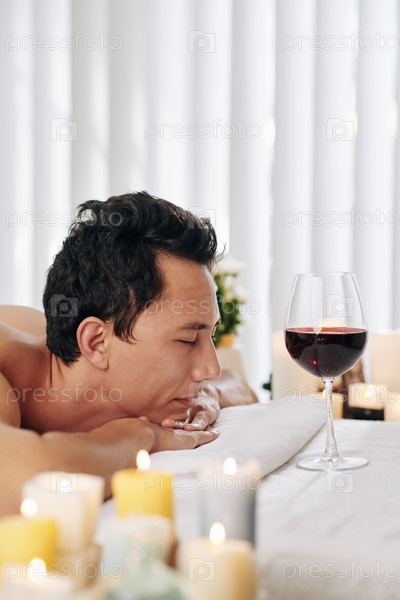 Зрелый мужчина наслаждается спа-дней