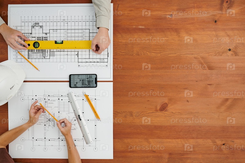 Обзор рук современных инженеров или строителей, делающих новые эскизы