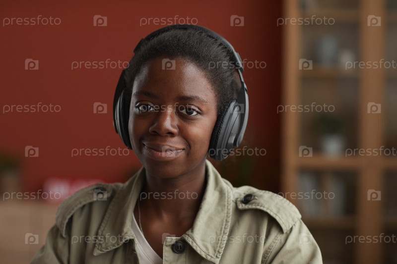Молодая афроамериканская женщина, носящая наушники
