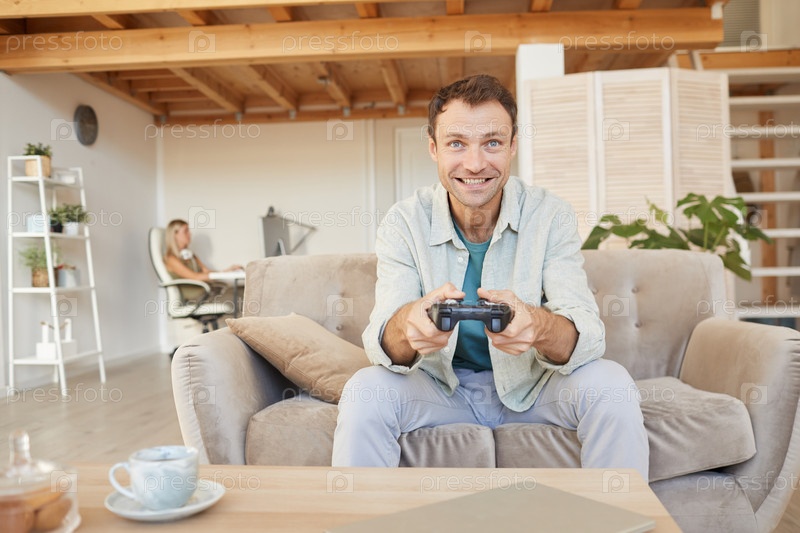 Человек играет в компьютерные игры