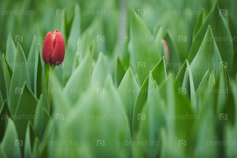 Красный тюльпан в саду